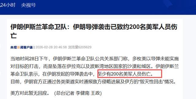 此前美国情报部门评估,伊朗导弹命中率不足40%,但这次14处美军基地均被准确命中,革命卫队公开的战报显示,至少200名美军人员伤亡。